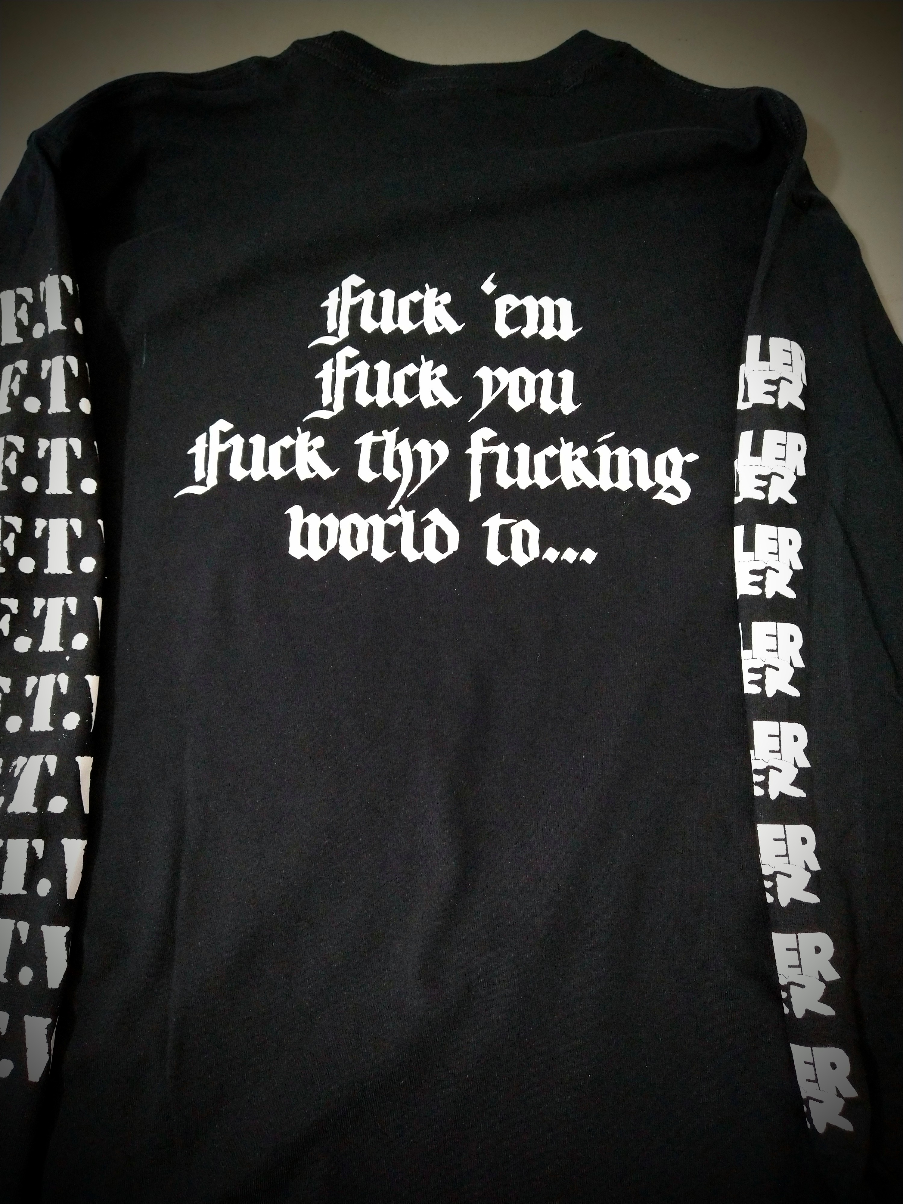 DRILLER KILLER "Fuck the world" Longsleeve shirt This shirt is printed on the front, back and also both sleeves. OFFICIAL MERCH Gildan/Yazbek shirts. 100 % COTTON.