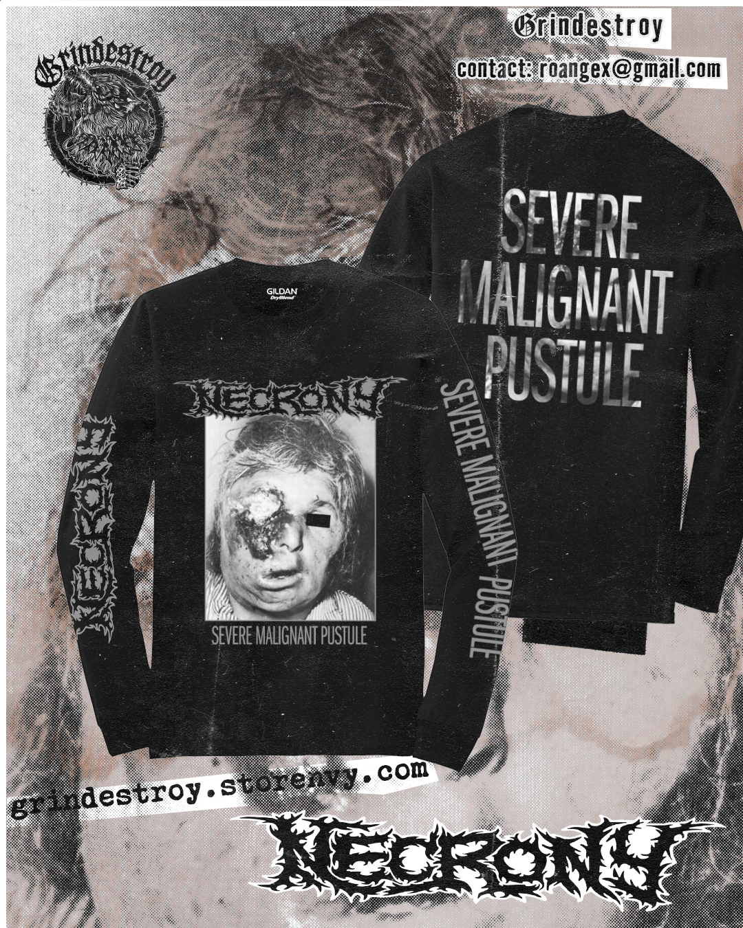 NECRONY "Severe Malignant Pustule" Long sleeve OFFICIAL MERCH Gildan/Yazbek shirts. 100 % COTTON.