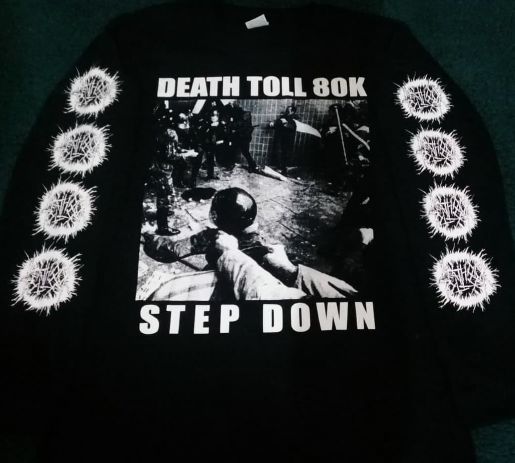 Death Toll 80K "Step Down"Longsleeve shirt.This shirt is printed on the front and and both sleeves too.
