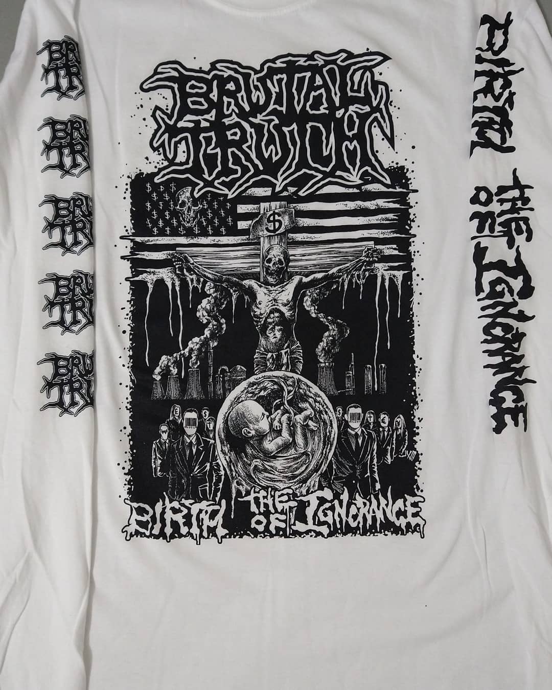 BRUTAL TRUTH "Birth of Ignorance" Longsleeve shirt This shirt is printed on the front and also both sleeves. Gildan/Yazbek shirts. 100 % COTTON.