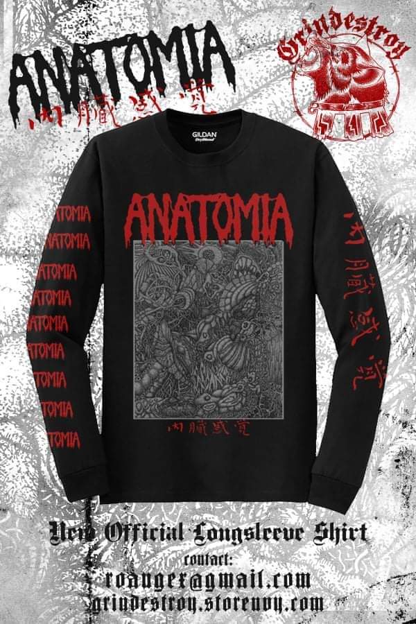 ANATOMIA Longsleeve shirt. (Intestinal Sensation) This shirt is printed on the front, and also both sleeves. OFFICIAL MERCH Gildan/Yazbek shirts. 100 % COTTON.