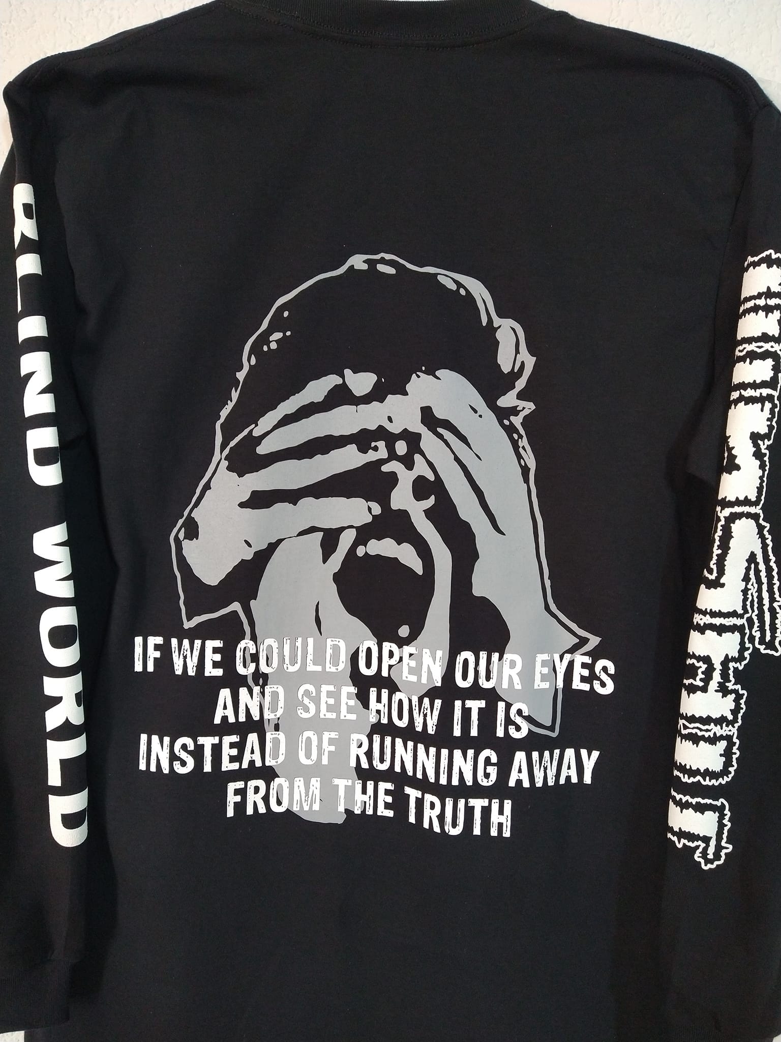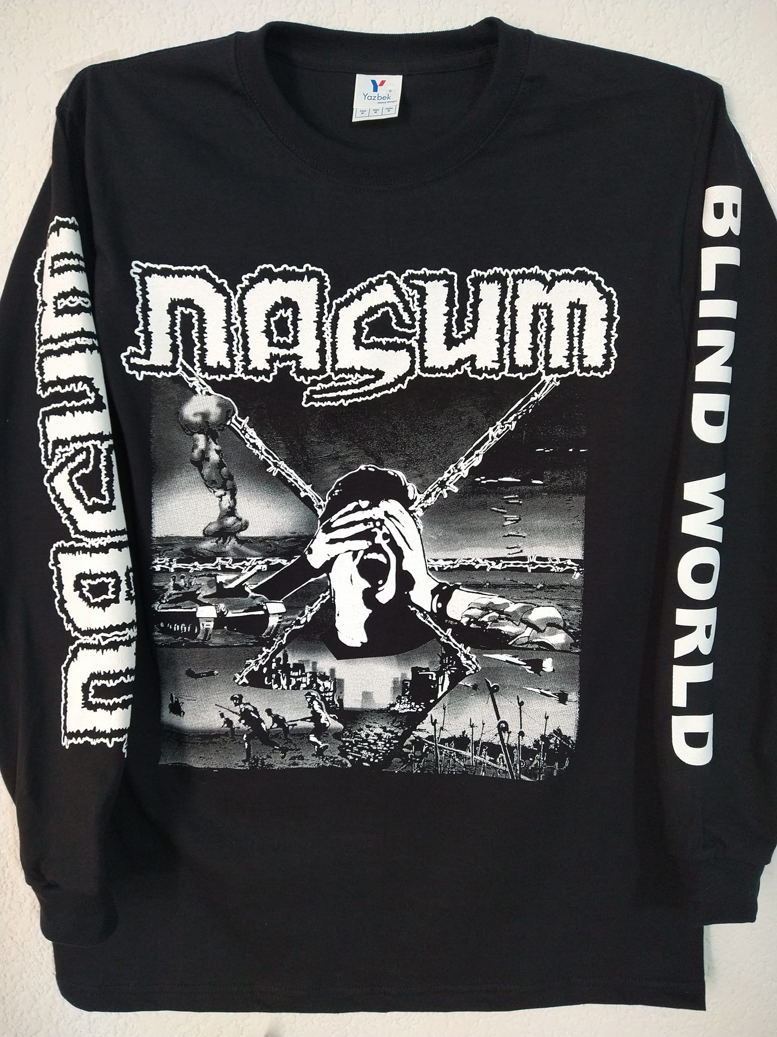NASUM "BLIND WORLD" OFFICIAL LONGSLEEVE Original artwork from 1993 This shirt is printed on the front, back and both sleeves. OFFICIAL MERCH Gildan/Yazbek shirts. 100 % COTTON.