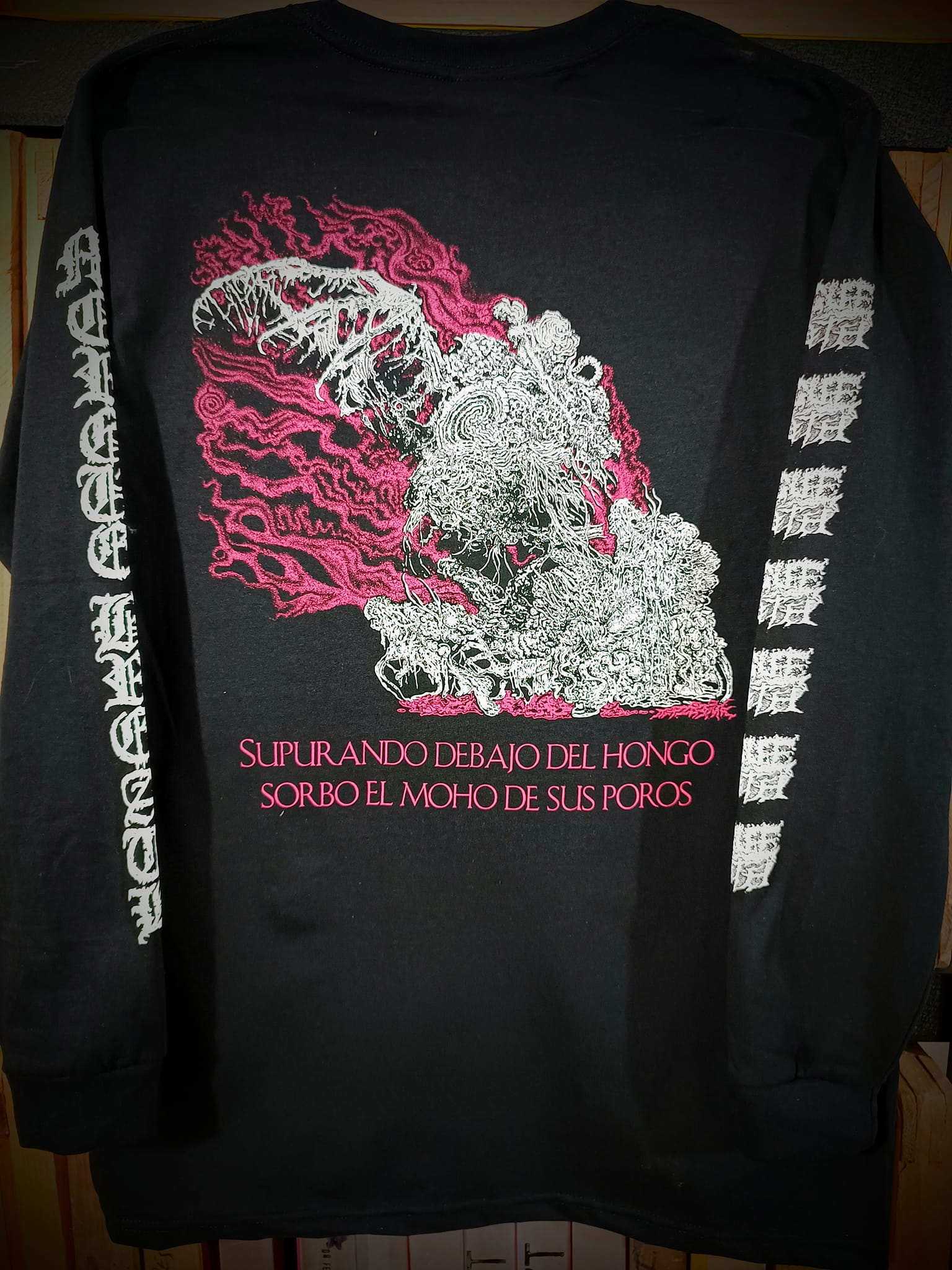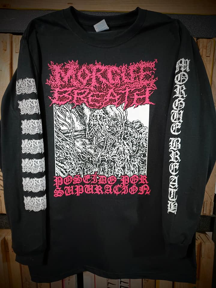 MORGUE BREATH 'POSEÍDO POR SUPURACIÓN' LONGSLEEVE This shirt is printed on the front, back and also both sleeves. ARTWORK DONE BY PIERRE 'DE PLASMA INDUSTRIES'. OFFICIAL MERCH Gildan/Yazbek shirts. 100 % COTTON.