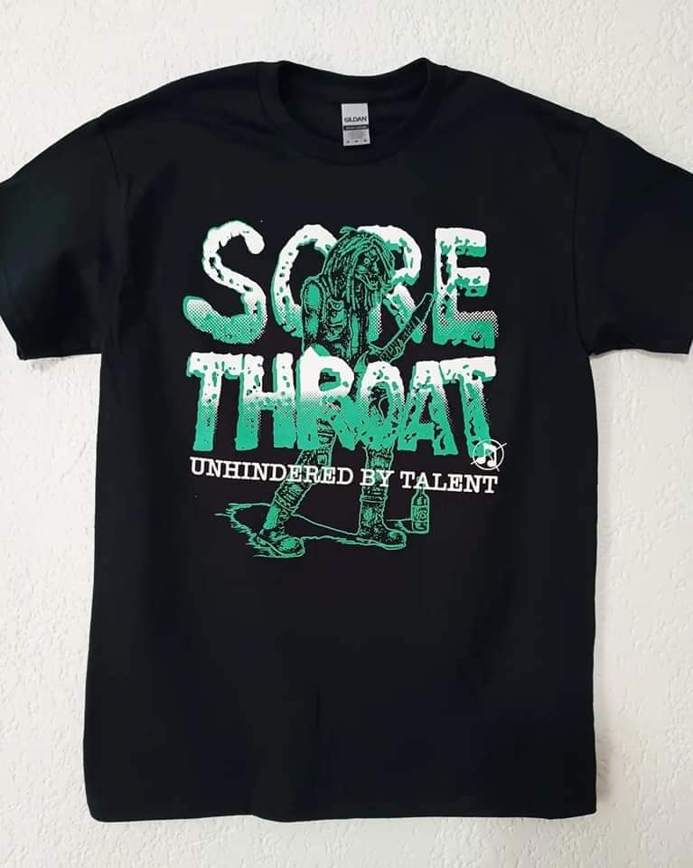 SORE THROAT Artwork by Rich 'Militia'. This shirt is printed on the front and back OFFICIAL MERCH Gildan/Yazbek shirts. Depends on availability. 100 % COTTON.