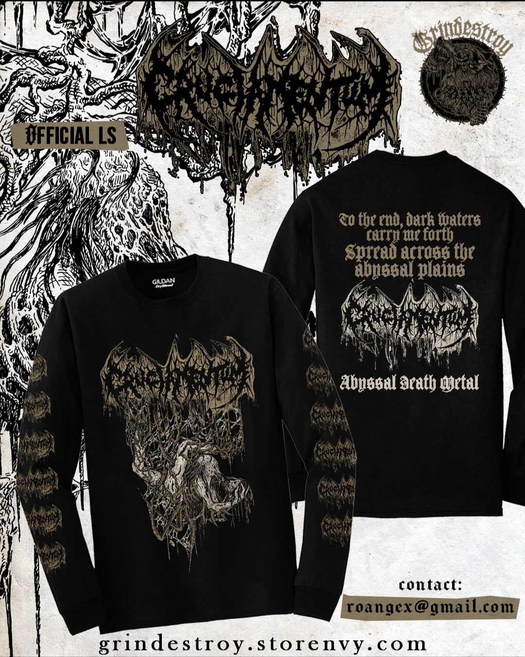 CRUCIAMENTUM "Abyssal Death Metal" Long sleeve shirt OFFICIAL MERCH Gildan/Yazbek shirts. 100 % COTTON.